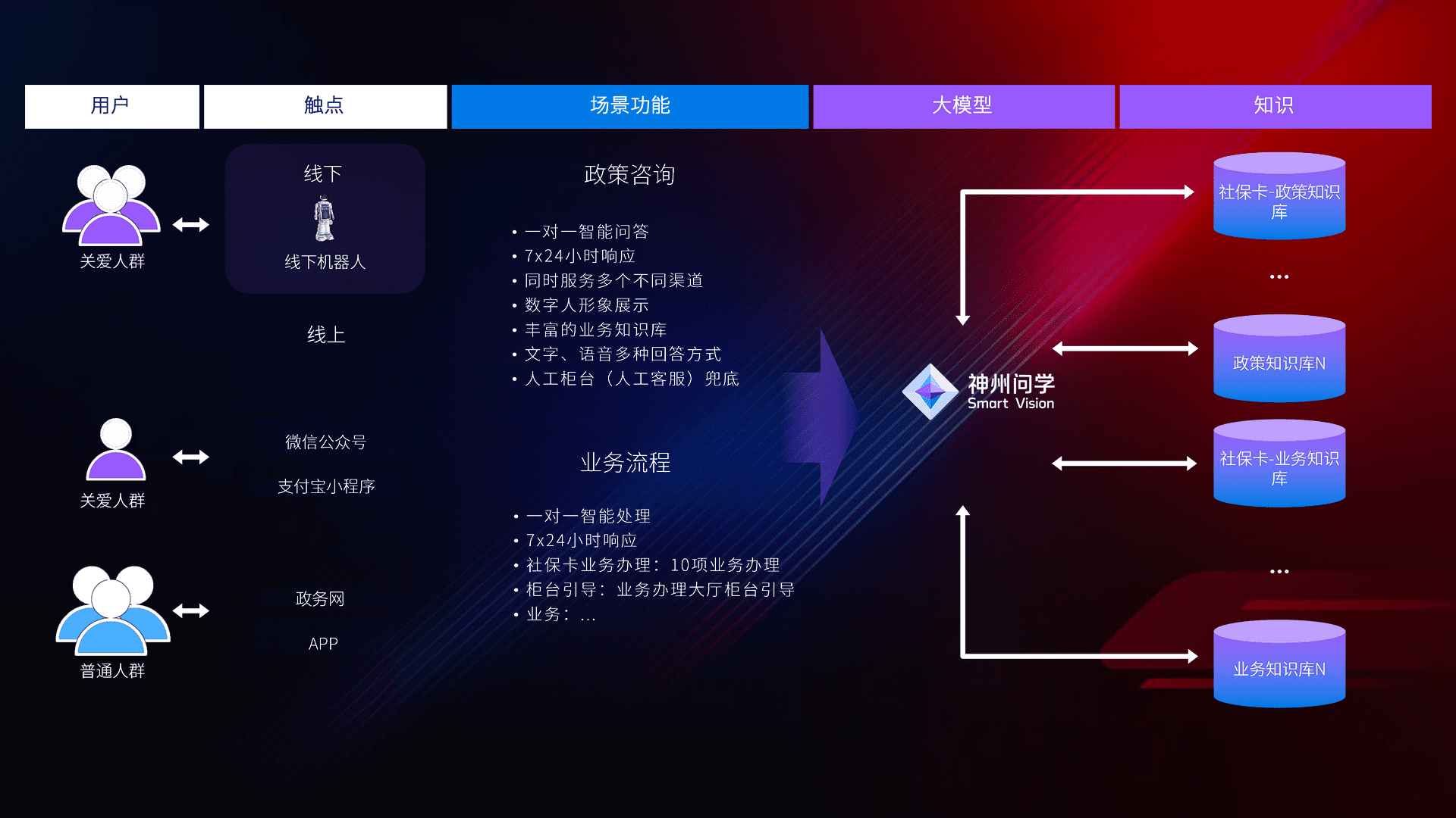 在服务大厅部署客服机器人,,在线上应用和小程序配置客服数字人,,,724小时为群众解答常规问题,,,客服机器人无法处理的,,,转现场人工处理。。